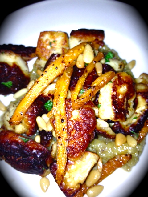 The Best Thing on the Menu: Crispy Haloumi with Golden Raisins, Carrots and Pine Nuts appears in the “Mezze” section and can’t be missed. Haloumi dates back to the Medieval Byzantine period, originating in Cyprus. Made from sheep and goat milk, this cheese was born to be grilled (or fried) because of its ability to withstand high heat without melting. It’s traditionally served with watermelon or mint, but the possibilities are endless.