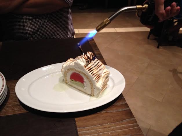 Find that second stomach of yours when it comes time for dessert because Boulud’s Baked Alaska competes for the Best Thing on the Menu title. A perfectly molded trio of pistachio and vanilla ice cream plus raspberry sorbet is flambéed tableside using chartreuse. (We requested extra chartreuse for greater effect.) The servers are well trained, but trim your eyebrows before you order this finale. If you’re a chocolate lover, try the Chocolate-Chocolate, a sundae with chocolate chip cookies, chocolate truffle cocoa nibs, chocolate fudge, and chocolate whipped cream. It’s like taking the Acela straight to heaven.