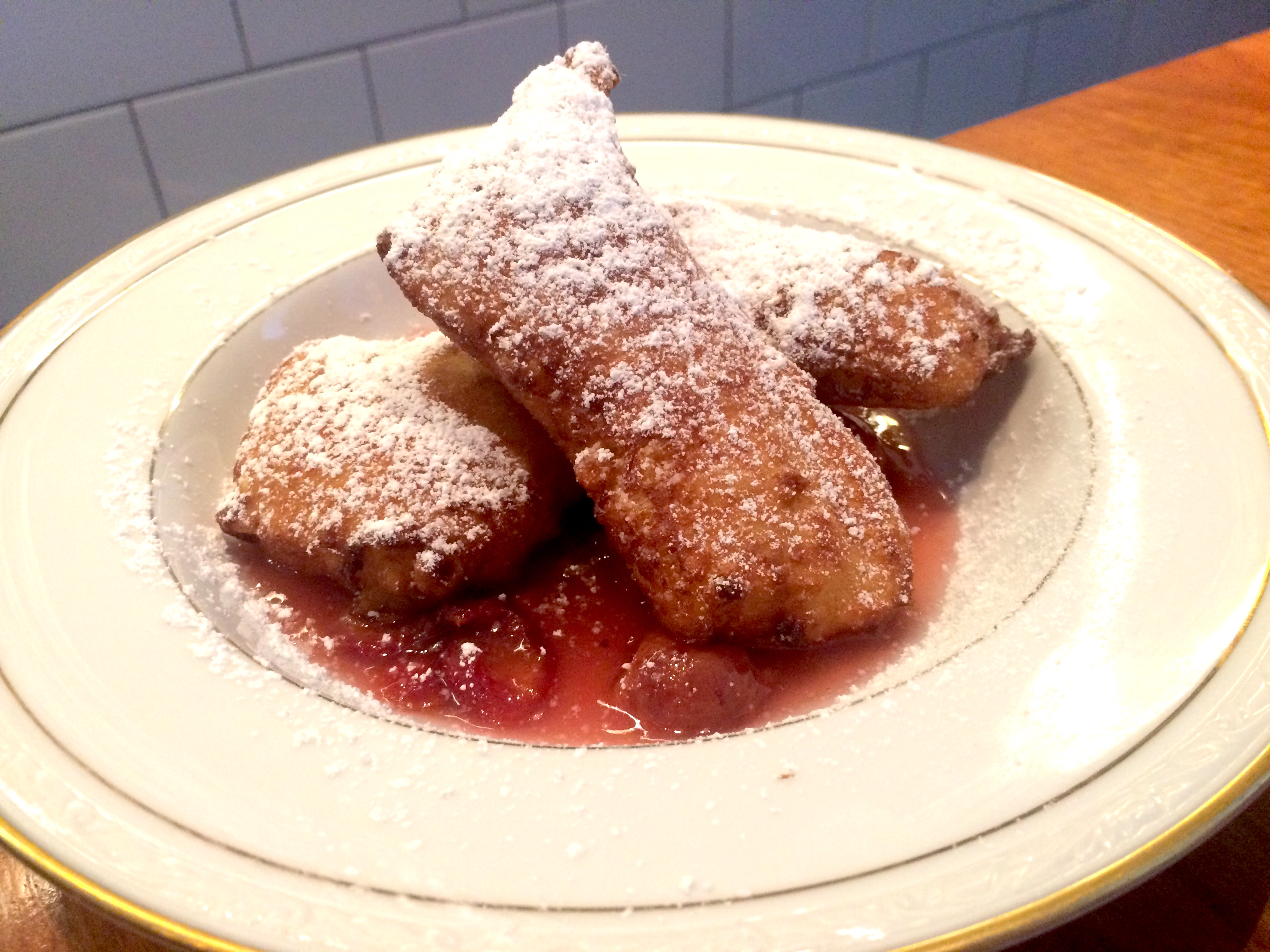 The menu at Sally’s Middle Name changes daily, but the stalks seem to stay on, making them a bit of a signature dish. After the stems, the Next Best Thing on the Menu would probably be something from the dessert selection, like these cannelloni-shaped beignets.