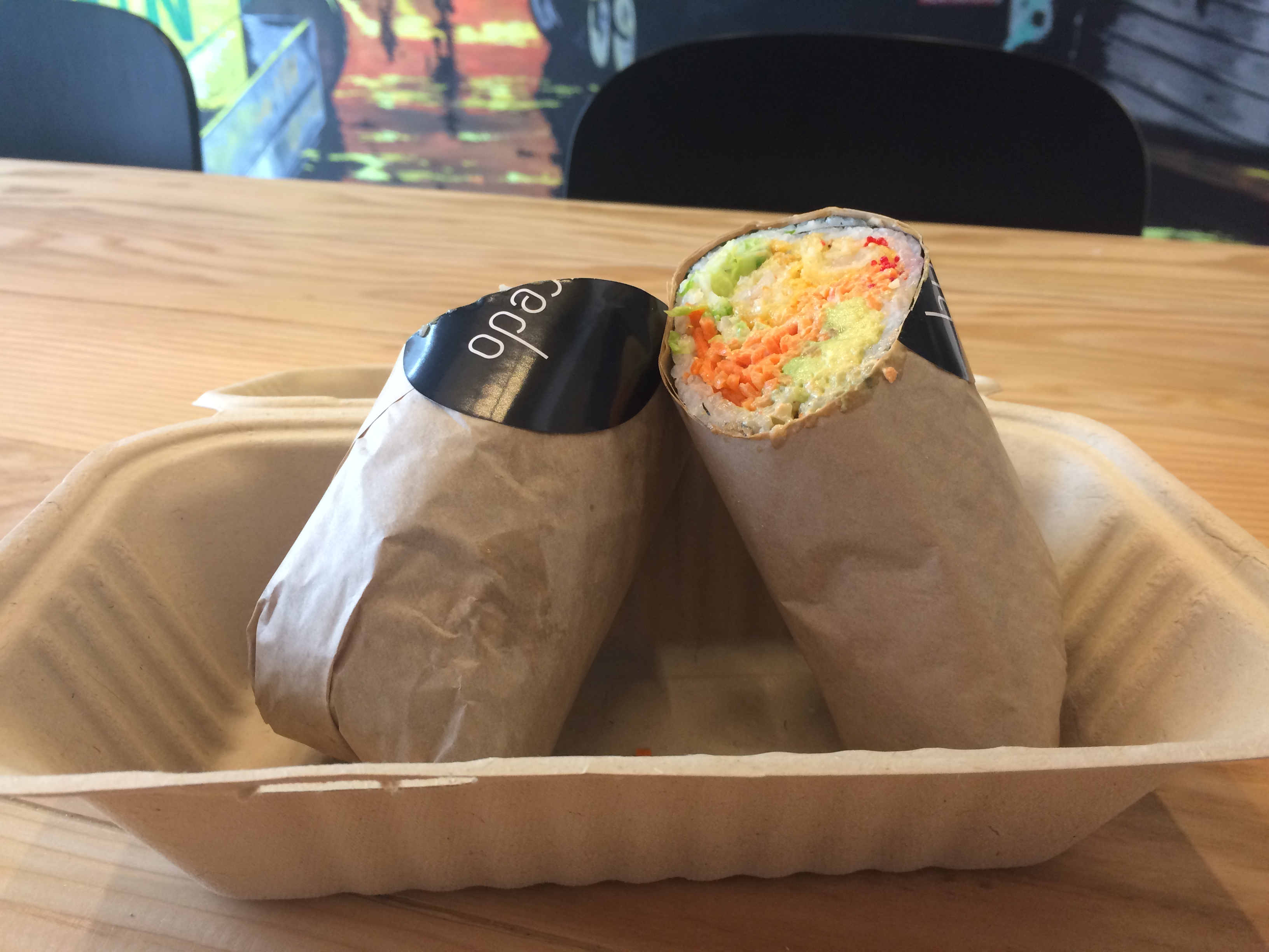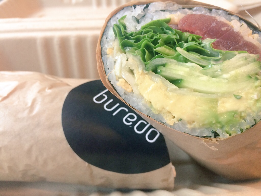 If you want to see shock on the level of someone seeing one of the Saw movies for the first time, show a classroom of Japanese students an American sushi menu. Mango! Cream cheese! Asparagus! We’ve taken a cuisine that usually consists of one or two ingredients and exotified it, sometimes even deep-frying entire rolls. Now, consider introducing them to Buredo: downtown’s buzziest lunch pit stop that supersizes sushi rolls until they reach the size of small burritos. Perhaps there will be an eye roll or two, but after one bite, anyone is bound to be smitten.